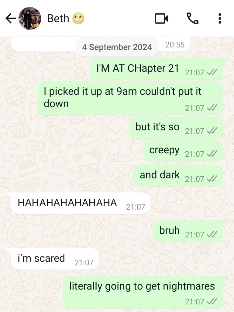 This is Wen-Yi Lee’s debut novel and GOSH it is incredible. You are in for a crazy, bone-chilling ride!!! I literally had to pull my window blinds down because I got so scared reading this at home. (It’s classified young adult horror.) Tldr, young people in the mysterious town of Slater are dropping dead, and Isadora Chang and her friend Mason are racing against time to find out why—before the shadows take them too. This isn’t just a superficial ghost story. At its core, it’s about confronting one’s past, learning to make difficult decisions, and letting go.